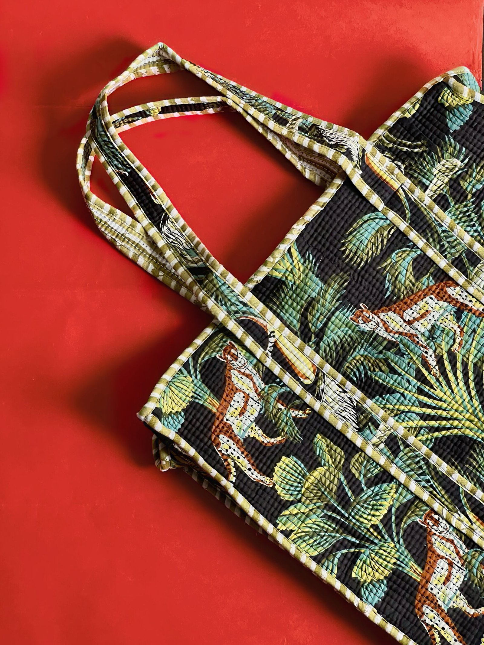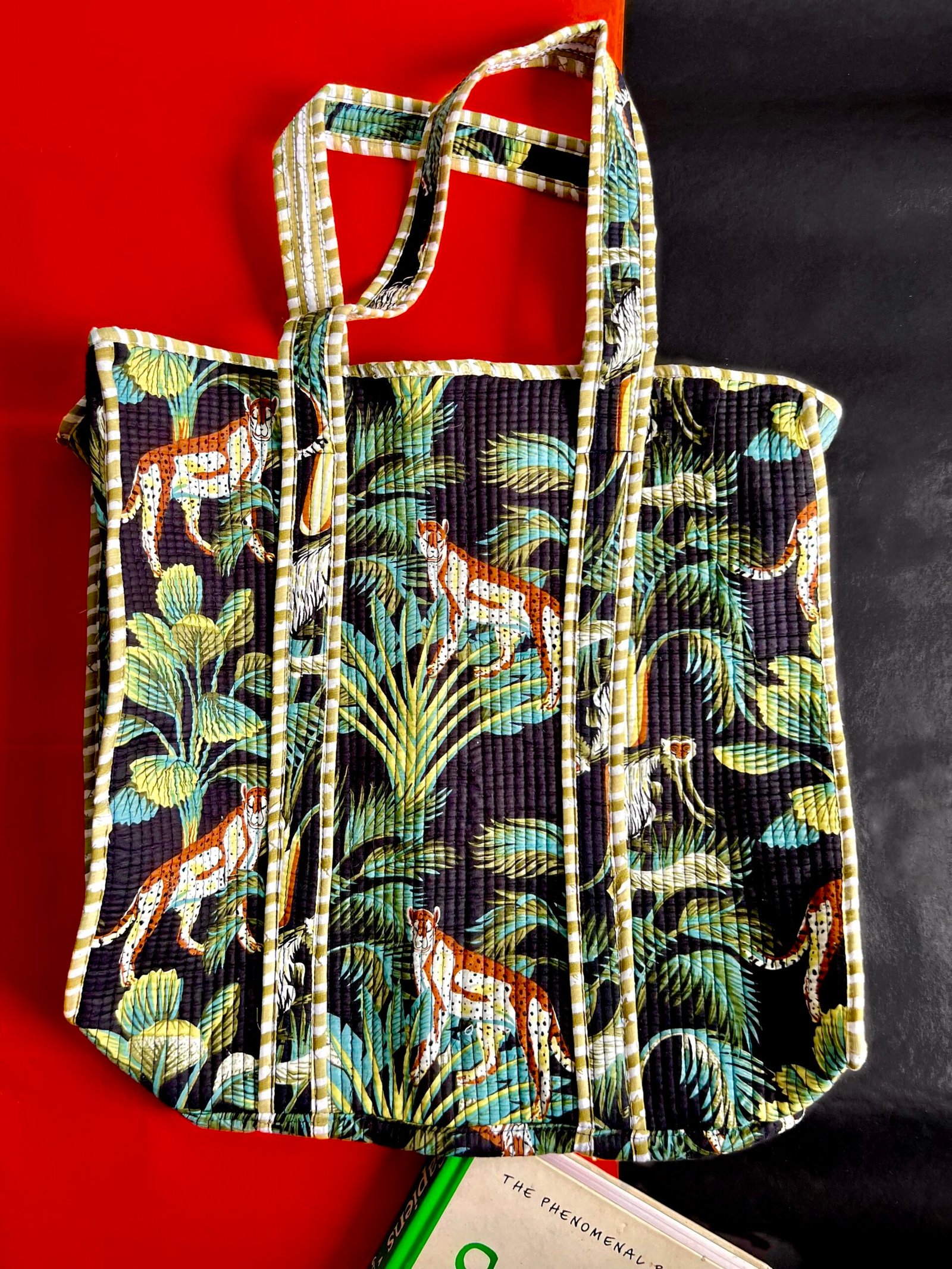 Be the first to review “Black Tropical Quilted Tote Bag”