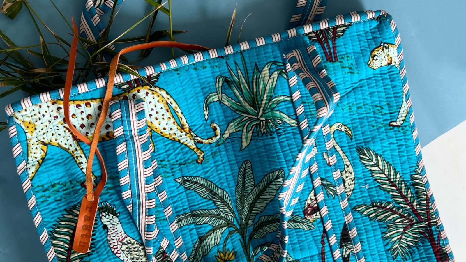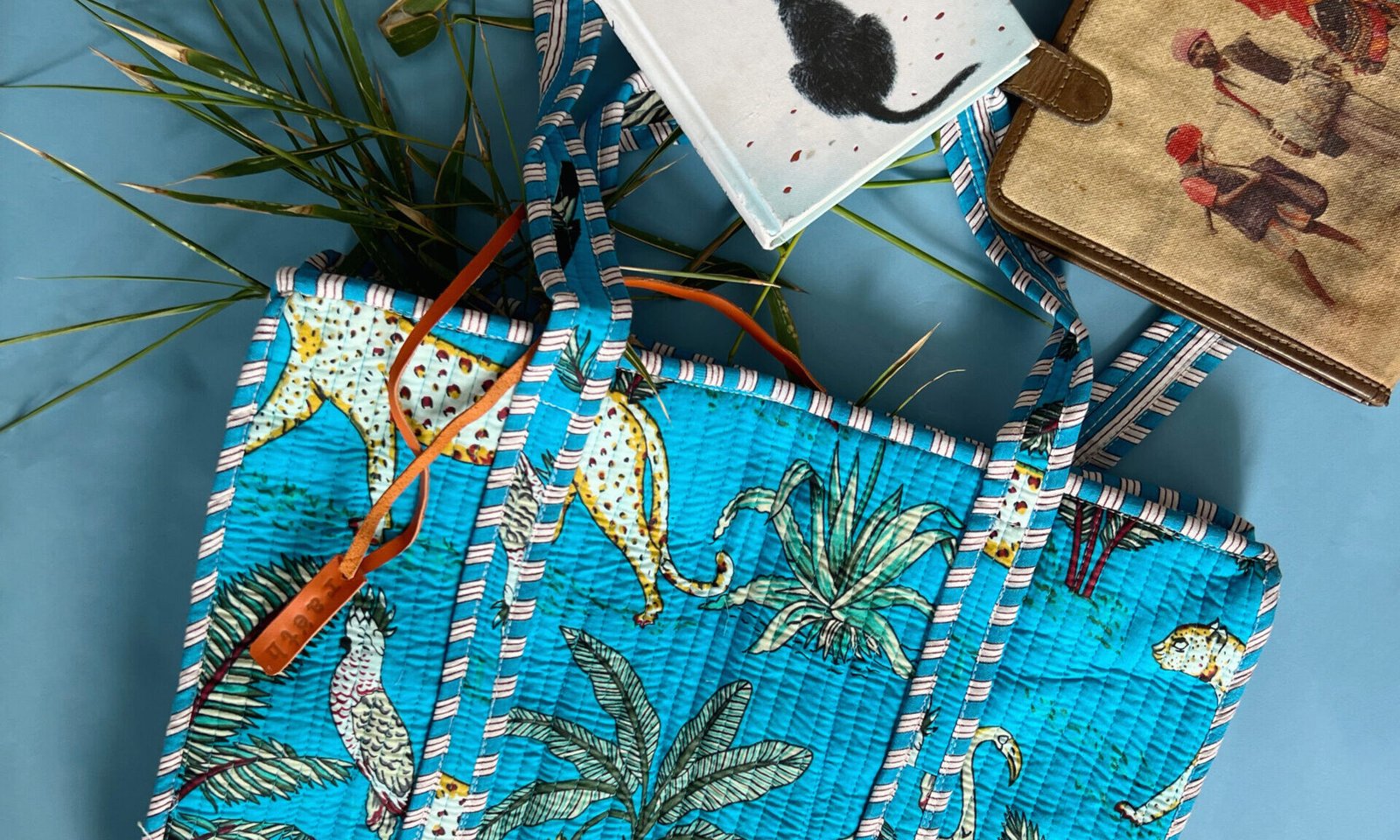 Original price was: ₹1,200.00.₹800.00Current price is: ₹800.00.Blue Tropical Quilted Tote Bag