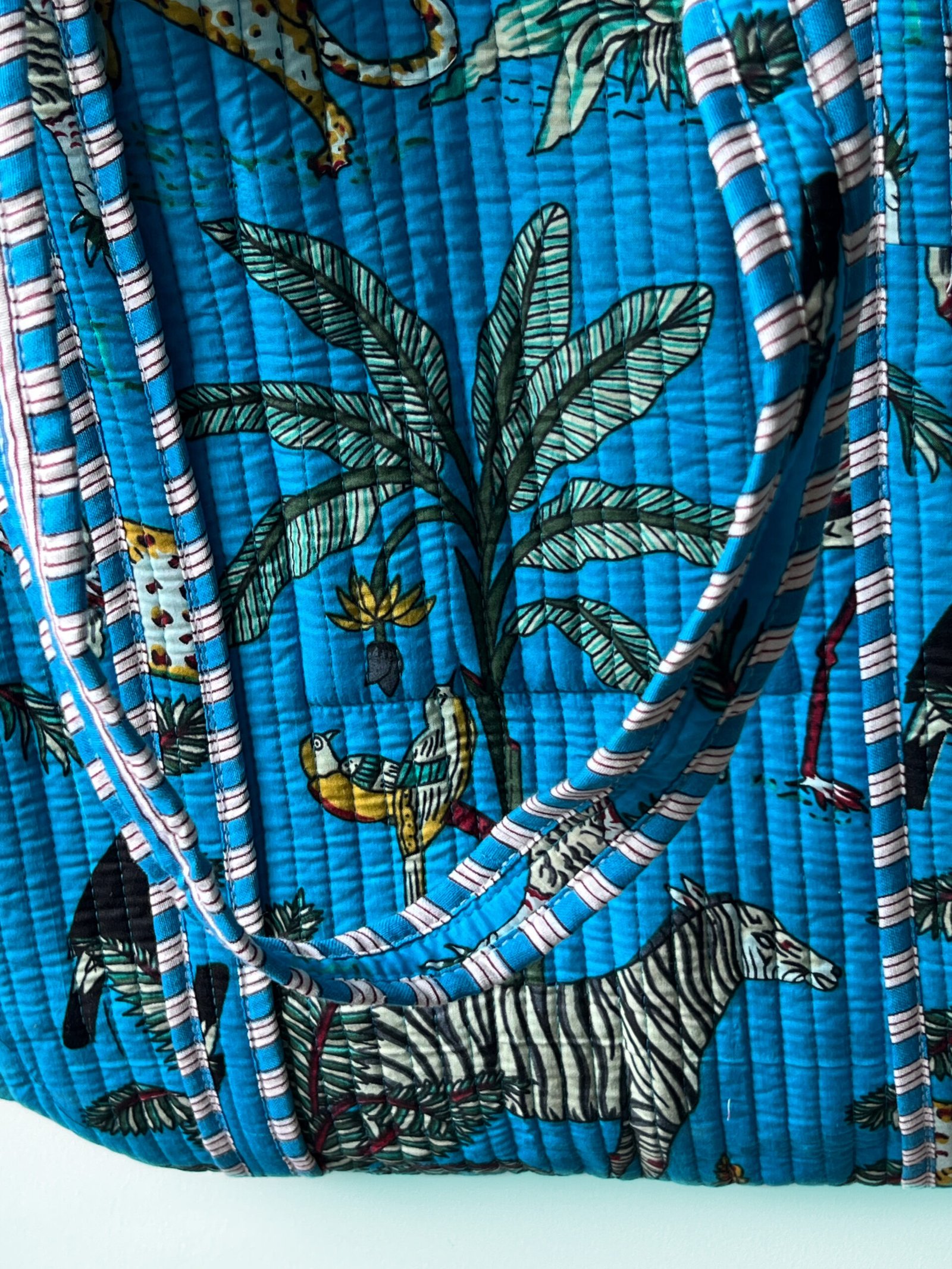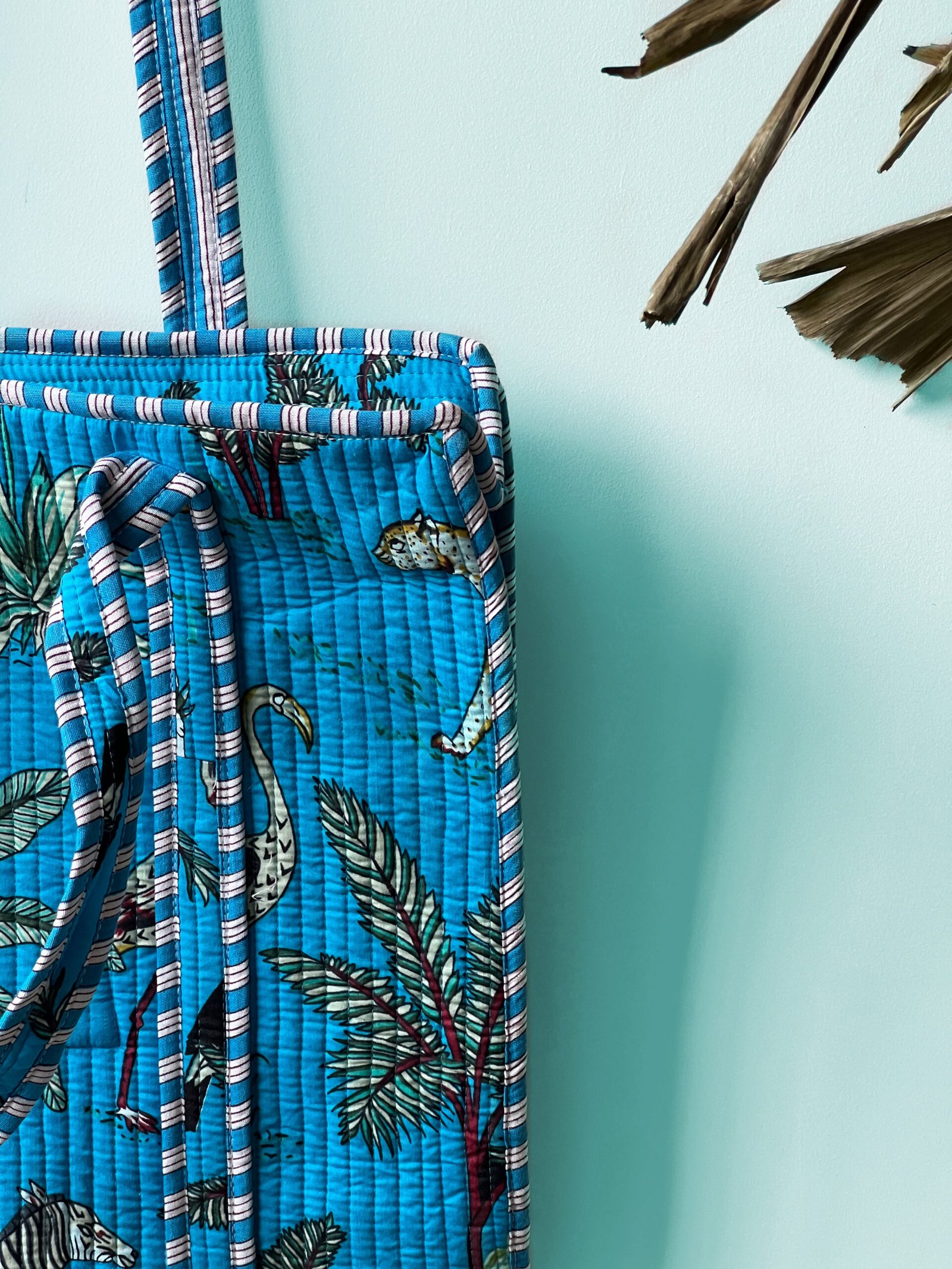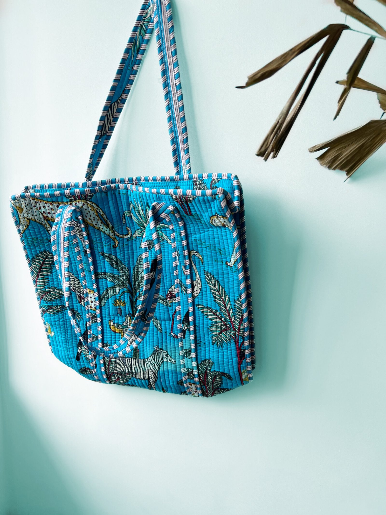 Original price was: ₹1,200.00.₹800.00Current price is: ₹800.00.Blue Floral Quilted Tote Bag