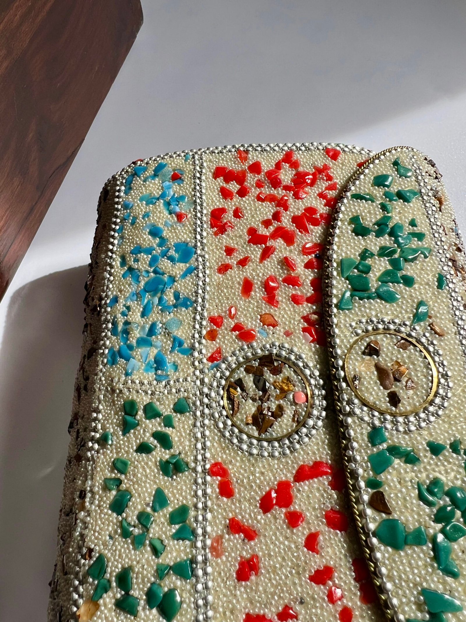Add a touch of effortless elegance to your look with this beautifully crafted metal clutch. Designed to transition seamlessly from casual outings to party evenings, this clutch features a structured metal base adorned with intricate multicolor embellishments that bring charm and character to every outfit.